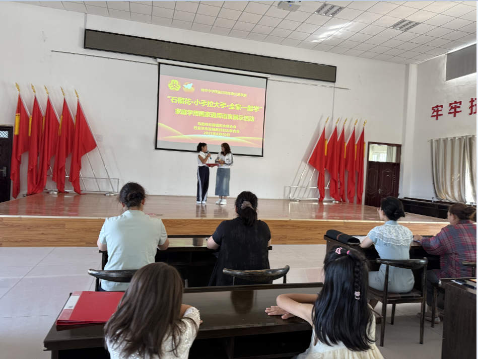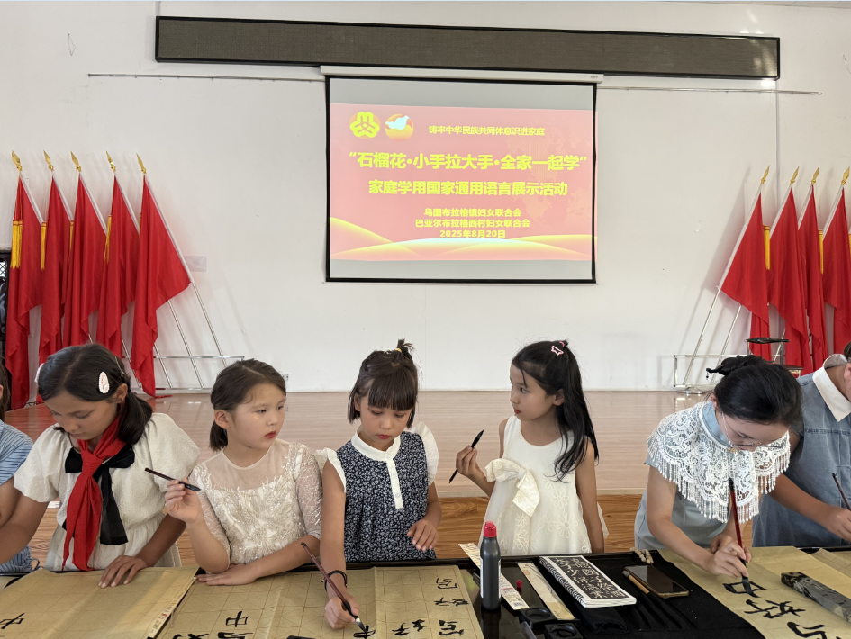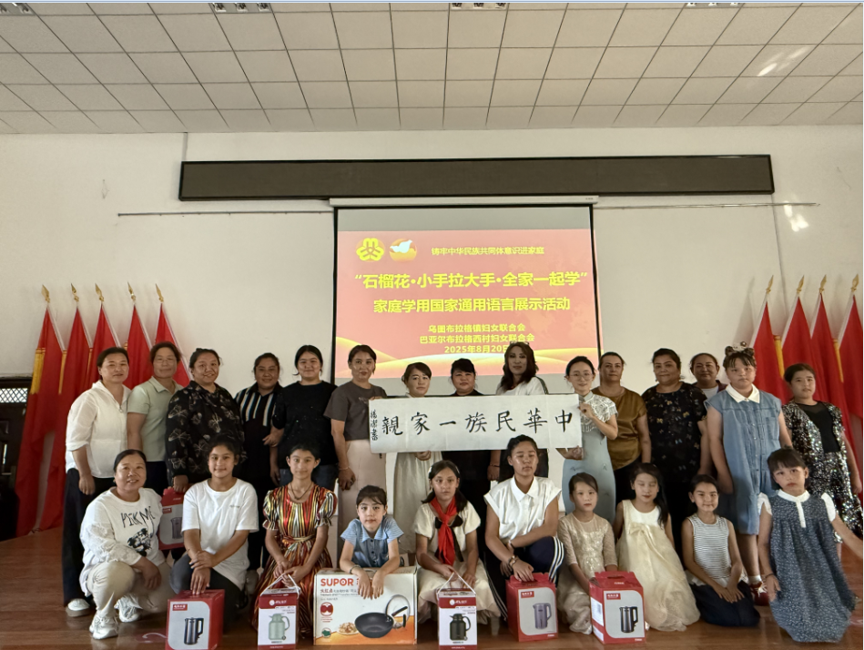 8月20日,乌图布拉格镇妇联联合巴亚尔布拉格西村共同举办“石榴花・小手拉大手・全家一起学”家庭学用国家通用语言展示活动。各族姐妹们与小朋友们欢聚一堂,共赴这场充满爱与力量的语言盛宴。活动期间,大家还一同参与了美丽庭院观摩活动,在感受语言魅力的同时,领略乡村人居环境之美。