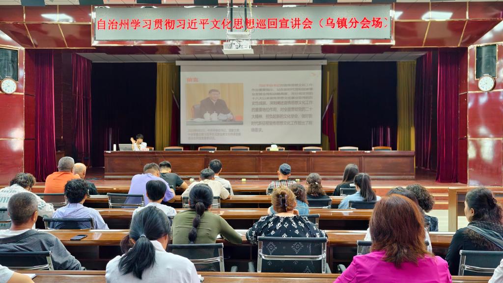 根据自治州党委安排部署,8月26日上午,自治州学习贯彻习近平文化思想巡回宣讲活动走进乌镇,全镇宣传思想文化工作骨干、草根宣讲员等近40人参加活动。