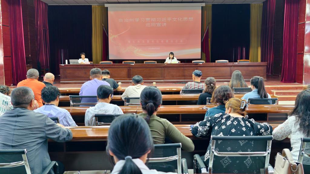 活动现场,自治州学习贯彻习近平文化思想巡回宣讲团成员、博乐市委党校(行政学校)高级讲师崔巧霞老师以深入浅出的语言,紧密结合实际,通过理论阐释与案例解析相结合的方式,深入剖析习近平文化思想的深刻内涵和实践路径,使宣讲有血有肉、有声有色,深刻阐释了习近平文化思想的形成和内涵。