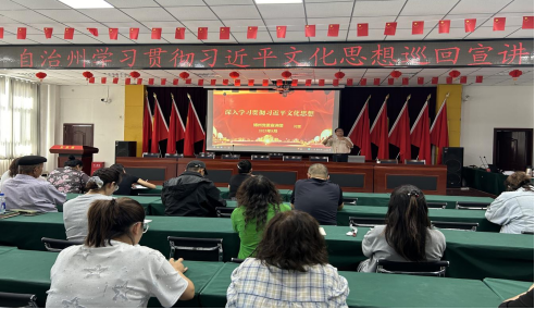 为深入学习贯彻习近平文化思想,进一步增强青得里镇干部、群众对新时代文化使命的认识,2025年8月26日,青得里镇邀请博州党委讲师团原团长闫雷开展此次巡回宣讲活动。此次活动在镇政府大会议室举行,吸引了镇机关干部、各村(社区)代表共50余人参加。
