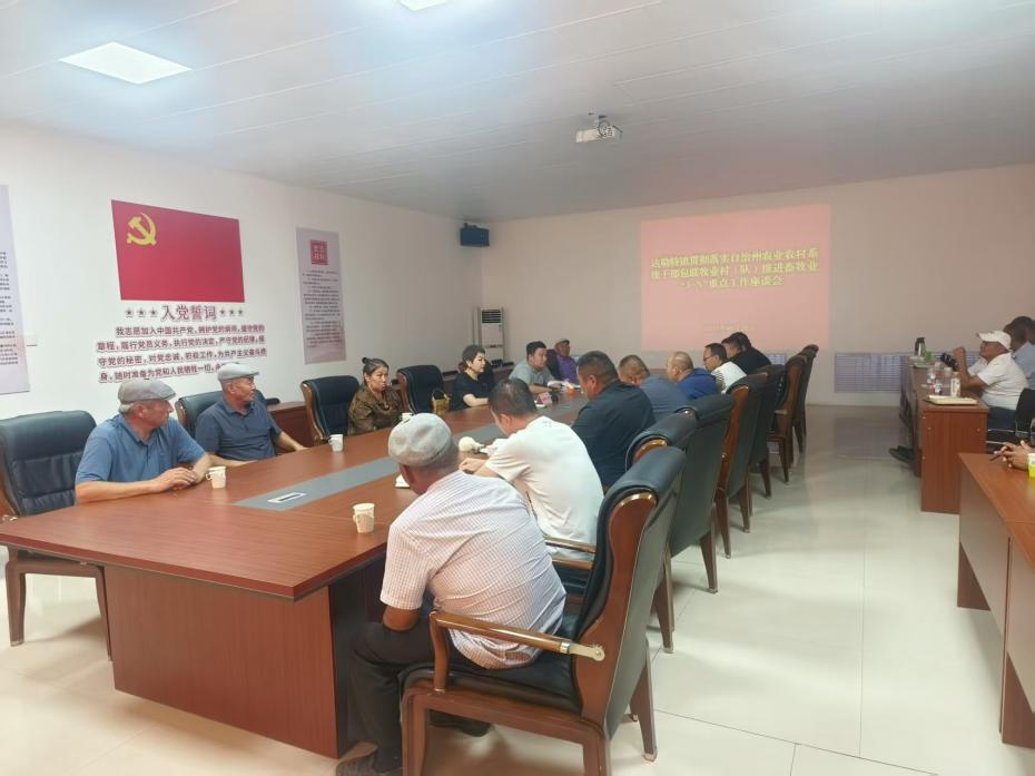 为深入探讨新时期草原畜牧业高质量发展路径,加快推进畜牧业现代化转型升级,2025年8月28日下午,达勒特镇组织召开贯彻落实自治州农业农村系统干部包联牧业村(队)推进畜牧业“3+N”重点工作座谈会,镇级分管领导、州农业农村局、博乐市畜牧兽医发展中心相关负责同志、镇农业发展服务中心畜牧全体干部、牧业村队负责人及牧民代表共30余人参加座谈。