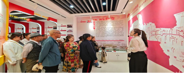 活动首站前往爱国主义教育基地。青得里街道东方红社区第一书记赛孜木担任讲解人员,引领大家依照历史脉络参观展品,并详细阐释了抗战时期军民齐心协力抵御外敌的历史事迹。在基地宣誓墙前,党员代表举起右拳重温入党誓词,那铿锵有力的誓言中满含着传承红色基因的坚定决心。随后举办的“红色故事分享会”上,退伍军人代表崔忠祥结合自身经历,讲述了父辈参与抗战的过往,使在场人员在实地体验中更为深切地感悟到“不畏强暴、自强不息”的抗战精神。