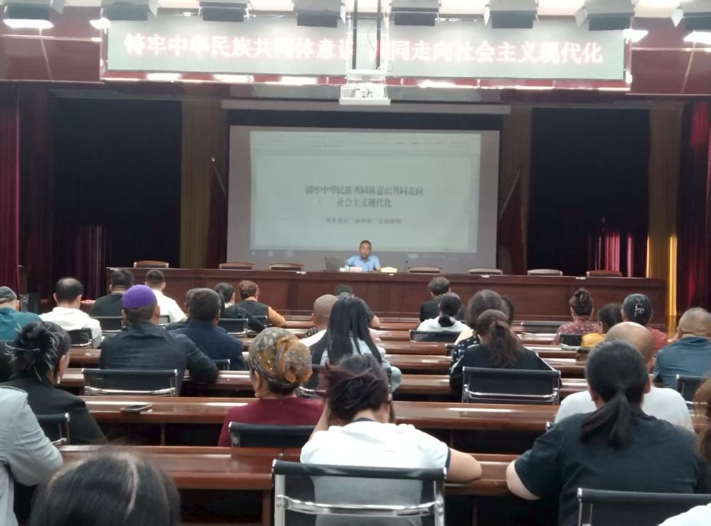 为深入贯彻落实习近平总书记关于加强和改进民族工作的重要思想,扎实推进铸牢中华民族共同体意识教育,进一步引导辖区干部、群众铸牢中华民族共同体意识,9月9日,州党委常委、统战部部长木合甫力在乌图布拉格开展“铸牢中华民族共同体意识”主题宣讲活动。乌图布拉格镇党政班子成员、机关干部、村(社区)党支部书记、宗教教职人员、党员、“两代表一委员”、村民代表等60多人参加宣讲活动。