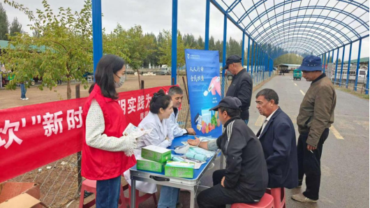 在镇卫生院义诊摊位前,前来咨询求诊的群众络绎不绝,许多老人一边排队测量血压、测血糖,一边了解健康管理知识。“年纪大了,平时想找医生检查一下,还得专门去趟医院挂号排队,今天出来逛巴扎购买日用品的功夫,看到‘健康义诊’就免费测量了血压,还给予日常预防和需要注意的建议,方便又贴心!”现场居民老李说道。
