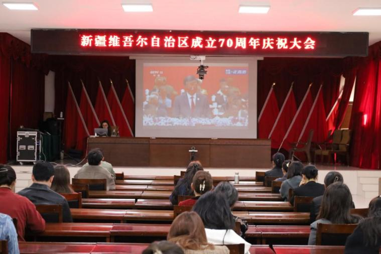 收看现场秩序井然,干部们神情专注,认真聆听中共中央领导讲话,深入学习党中央、全国人大常委会、国务院、全国政协、中央军委的贺电精神。当看到习近平总书记等党和国家领导人出席大会,听到新疆70年来特别是新时代以来在党的领导下取得的历史性成就时,现场多次响起热烈掌声,大家脸上洋溢着自豪与振奋之情。