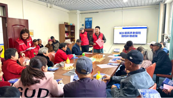 政策上门,答疑解惑“暖民心”。在筑牢安全防线的同时,活动也聚焦于提升老年人的生活保障水平。街道、社区特邀博乐市社保局与医保局的业务骨干,为老人们带来了权威的政策解读。社保局工作人员重点就“城乡居民养老保险提档补缴政策”进行了详细说明,通过算账对比的方式,清晰直观地向老人们展示了多缴多得、长缴多得的益处,并就大家关心的办理流程、补缴金额等问题进行了耐心细致的解答。医保局工作人员则围绕“城乡居民基本医疗保险、医疗救助、人身意外伤害保险”三大板块展开宣传。他们对医保报销比例、大病保险、医疗救助的申请条件以及人身意外险的保障范围等都做了详尽介绍,消除了老人们在看病就医方面的诸多疑虑。活动现场还设立了临时咨询台,工作人员面对面、一对一地为老人们答疑解惑,确保惠民政策“找得到、看得懂、算得清”,真正打通政策宣传的“最后一米”。