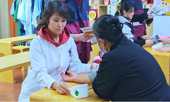 此外,社区还联合社区卫生服务中心,专门设置爱心义诊区,为老年朋友提供免费血压测量、健康咨询及常见病预防指导等服务。医护人员耐心解答老人们的健康疑问,并为他们送上实用的“健康礼包”,让老年人在家门口就享受到贴心的健康关怀。