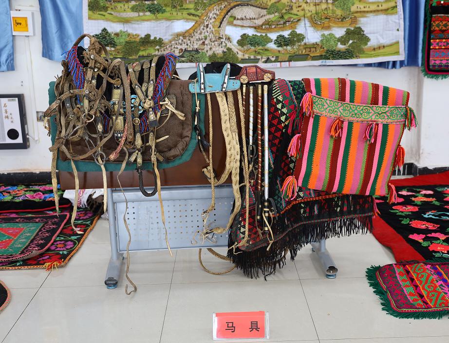 文化浸润,民族团结根基固。手工艺区的展品同样令人驻足,马具、毛毯、针织品、十字绣等手工艺品整齐陈列,每一件都凝聚着村民的匠心。博州党委党校教师法如再同志现场讲解展品中蕴含的各民族交融元素,让大家深刻感受传统工艺的魅力。