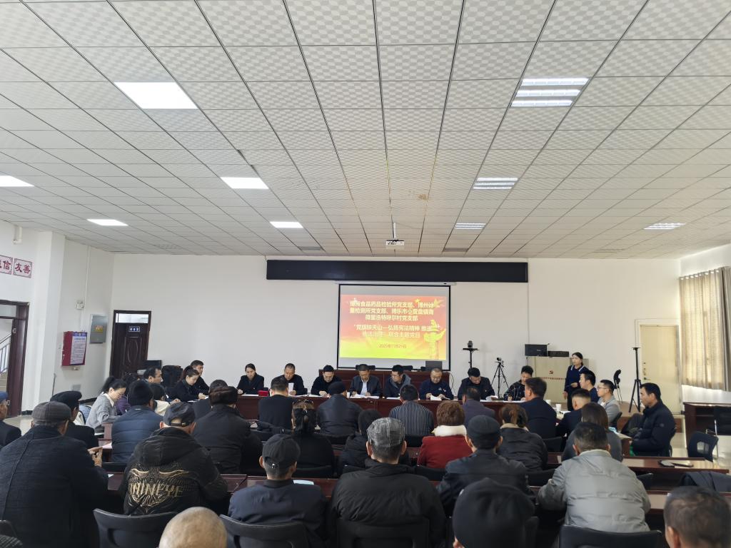 为深入学习贯彻习近平法治思想,切实提升基层治理法治化水平,11月21日下午,博州食品药品检验所党支部、博州计量检测所党支部联合博乐市小营盘镇青得里浩特呼尔村党支部开展“党旗映天山——弘扬宪法精神 推进依法治理”主题党日活动,博州市场监管局机关党委专职副书记陈荣新亲临现场指导,共52名党员(其中农村党员38人)参加活动。