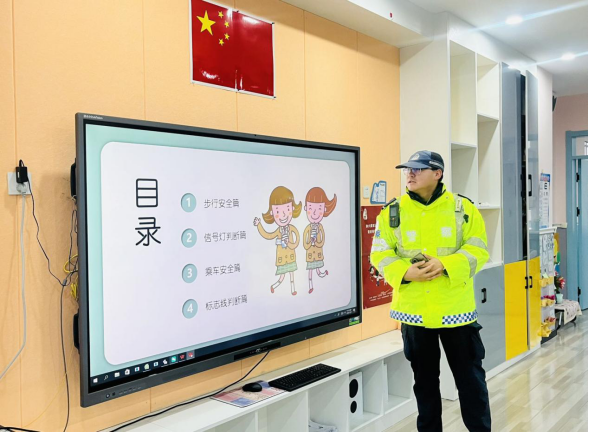 活动伊始,博乐市公安局交通管理大队交警张万祥通过精美的PPT动画和卡通展板,用浅显易懂的语言向孩子们讲解了基本的交通规则。“红灯停、绿灯行、黄灯亮了等一等”、“过马路要走斑马线”这些基本常识,在有趣的问答互动中深入孩子们的心中。