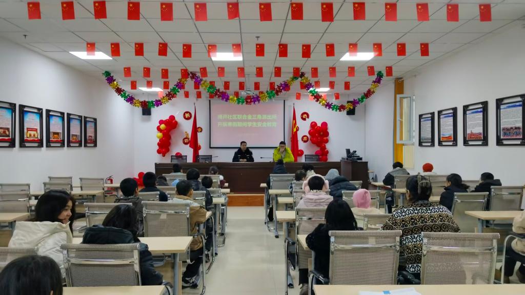 1月19日,博开社区联合博乐市边境经济合作区派出所开展“石榴籽”小课堂寒假安全知识教育活动,40余名青少年参与其中。