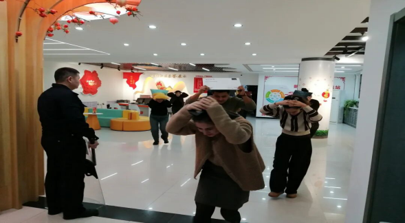 随着地震警报声骤然响起,居民们迅速双手护头、蜷曲身体,就近躲避到桌下、墙角等承重安全区域,沉着应对“强震期”模拟场景。待强震波减弱信号发出后,居民们在应急救援队工作人员引导下,保持弯腰低姿、捂住口鼻,沿预设疏散路线快速有序撤离。整个过程紧张有序,无推挤、无慌乱,仅用3分钟,所有参与居民便全部抵达安全地带。