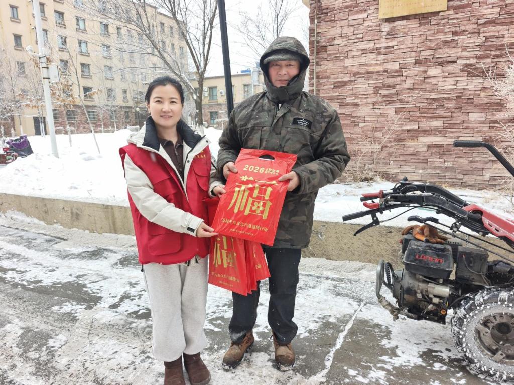 岁末寒冬,年味渐浓。为传承中华优秀传统文化,营造喜庆祥和的春节氛围,将社区的关怀与新春祝福精准送到居民身边,2月11日,青达拉街道银河社区开展“迎新春·送春联·暖民心”主题活动。社区干部化身“送福使者”,带着精心准备的春联与福字逐户走访、上门送福,让红彤彤的春联为家家户户添上浓浓年味,让真挚的关怀温暖寒冬。