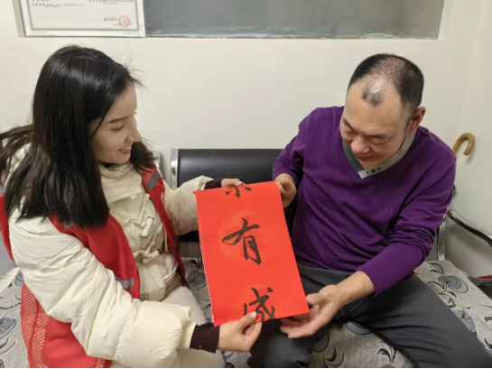在独居老人张家珍家中,社区干部紧紧握住老人的手,与她拉家常、问冷暖,详细询问身体状况和生活需求,认真记录其反映的困难与诉求。“春节到了,社区送来对联,我特别开心,感谢社区一直惦记着我这个老人,让我心里暖暖的。”张家珍老人笑着说道。