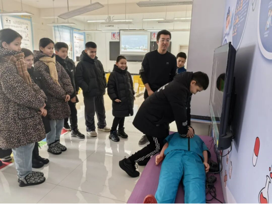 消防演练结束后,“急救小卫士”专题培训随即开展,帮助孩子们掌握实用急救技能。专业指导老师借助教学人体模型,手把手传授心肺复苏(CPR)的标准步骤、按压力度和操作手法,现场演示异物卡喉时海姆立克急救法的正确动作,并反复强调操作关键要点。孩子们依次上前实操练习,从精准定位按压部位、控制按压节奏,到规范进行人工呼吸,个个专注认真、勤学苦练,主动请教纠正不规范动作。不少孩子表示,这是首次近距离接触急救知识,学会了简单急救方法,真切感受到了守护他人生命的意义。