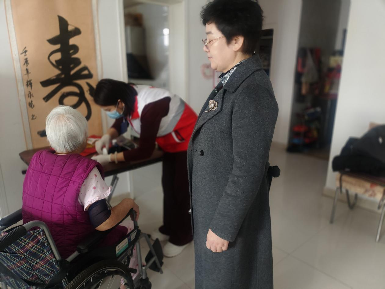 活动当天,社区工作人员与医护人员组成服务小队,逐户上门开展服务。医护人员为老人测量血压、血糖,进行心肺听诊与健康评估,提供康复按摩、肢体功能指导、用药规范、居家护理、饮食调理等专业指导;社区工作人员为老人送上节日慰问品,与家属亲切交流,详细了解老人生活状况与实际困难,现场记录健康信息与服务需求,同步更新完善服务台账。全程注重保护老人隐私,服务耐心细致、贴心周到,获得老人及家属一致认可。