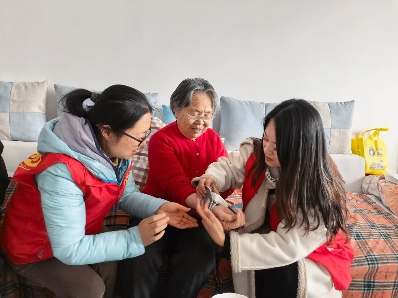 与此同时,党员志愿者走进高龄、孤寡、空巢老人家中,为老人打扫房间、擦拭门窗玻璃、清理屋内杂物、整理床铺衣物,帮助老人改善居家环境。大家围坐在老人身边,耐心倾听心声,细致询问身体状况与生活需求,叮嘱老人注意用火用电安全、根据季节变化及时添衣保暖,用真诚陪伴驱散老人孤单,用贴心话语传递组织温暖。