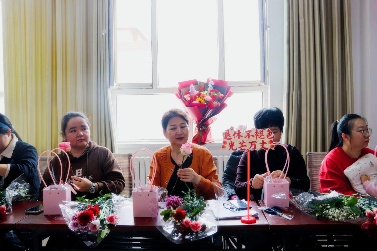 致辞结束后,活动进入温馨感人的光荣退休仪式环节。此次活动特别邀请了近期光荣退休的女干部曹明霞代表到场,她将青春与热血奉献给了街道的发展,用数十年的坚守与付出,诠释了责任与担当。同时为退休的“她”送上美丽的鲜花,深情感谢她们多年来的默默耕耘与无私奉献,祝愿她们退休生活幸福美满、安康顺遂、喜乐常伴。现场响起热烈而持久的掌声,既是对退休干部过往付出的崇高致敬,也是对她们开启人生全新篇章的美好祝福。随后,一段朴实的话语从视频中传了出来,屏幕上,家人的脸庞亲切熟悉、暖心的祝福、话语朴实真挚,既有远方家人对干部工作的理解与支持,也有对她们节日的祝福与期许,现场大家都热泪盈眶,倍感温暖与幸福。