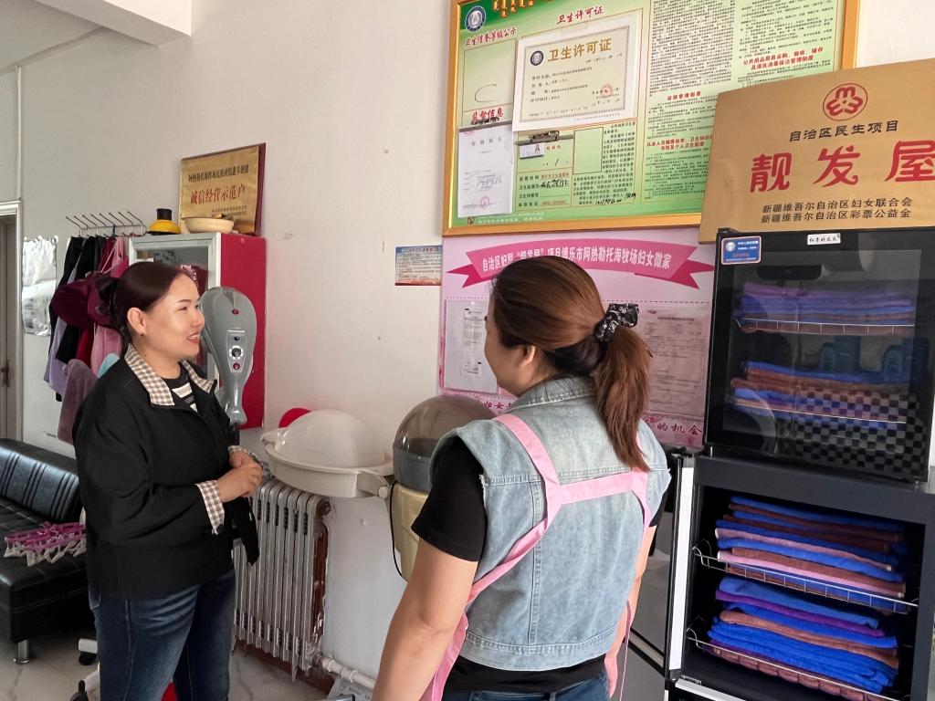 为精准服务妇女创业,及时掌握“靓发屋”运营情况,4月9日,阿热勒托海牧场妇联工作人员对“靓发屋”开展入户走访。