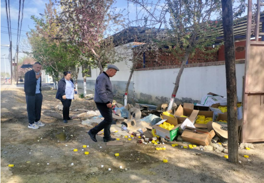 本次排查共发现两处突出问题:一是部分电井作业人员未按规定佩戴安全头盔、反光背心,施工区域及田间路口安全警示标志缺失,现场安全管理较为薄弱;二是X201线沿线村队存在农药瓶、废旧滴灌带、地膜、秸秆等废弃物乱堆乱放现象,未规范收集处置,存在安全隐患。