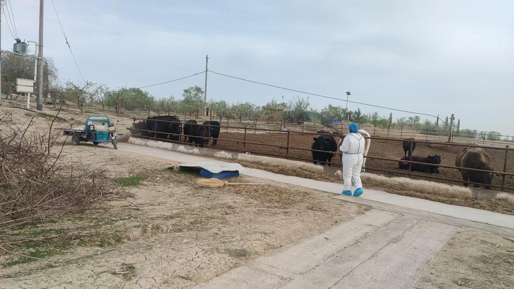 精准免疫重实效,织密防疫“安全网”。全镇严格落实动物防疫责任制,明确责任分工,强化监督落实。防疫员按照“镇不漏村、村不漏户、户不漏畜、畜不漏针”的原则,逐村逐户开展强制免疫工作。截至目前,春季防疫涉及473户养殖户,已完成456户,防疫入户率96.61%。其中,牛口蹄疫免疫任务0.67万头,已接种0.5506万头,防疫密度82.18%;羊口蹄疫免疫任务3万只,已接种2.5817万只,防疫密度86.06%;骆驼口蹄疫免疫任务0.0663万峰,已接种0.0412万峰,防疫密度62.14%。