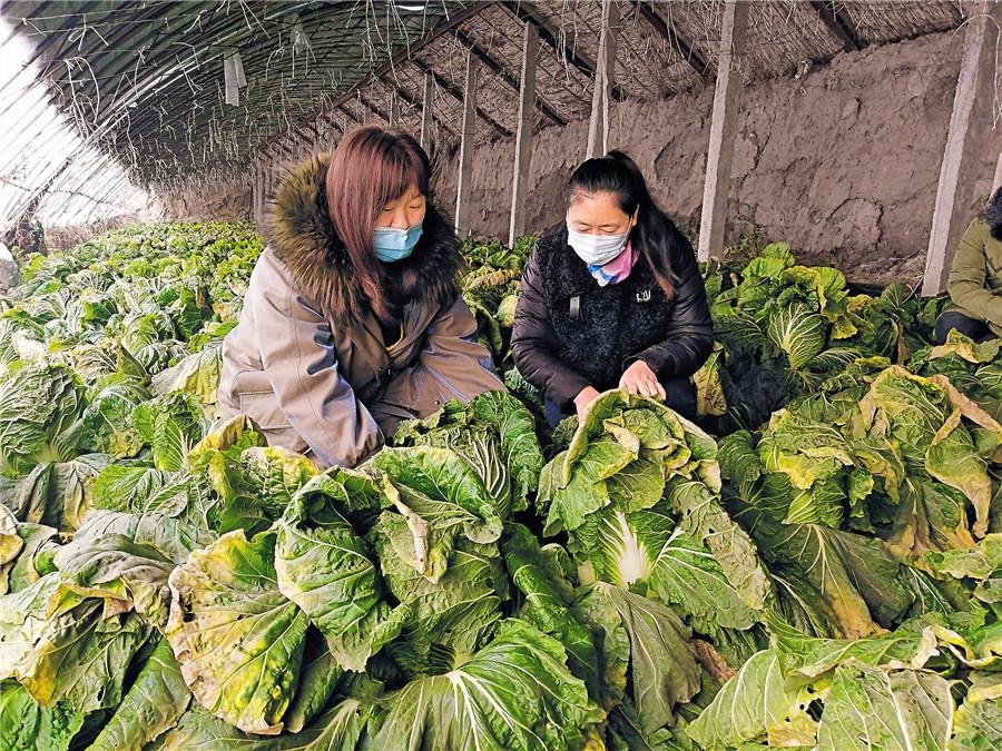 3日,州供销社驻博乐市贝林哈日莫墩乡决肯村“访惠聚”工作队队员包思恒帮助村民一起收白菜,并帮助他们在朋友圈和群里发布销售白菜的信息。