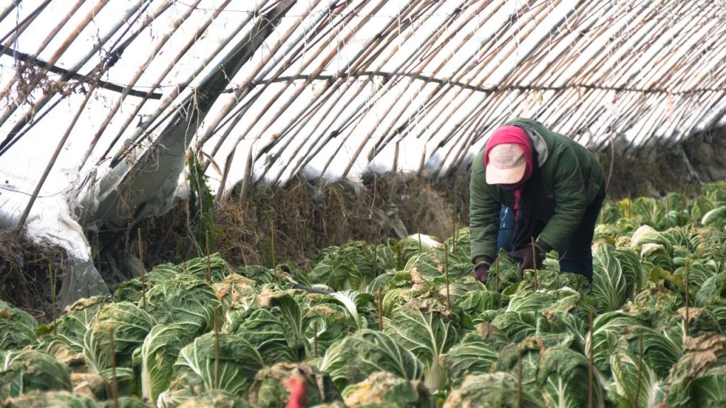 王文侠种植经验丰富、技术纯熟,每年她都会把冬季菜和春季菜接茬时间安排得合理有序,当前她大棚里的各类冬季蔬菜很快就上市了,紧接着要为明年春季菜种植做准备。王文侠说:“以前种棉花,收入低,近年来政府帮我们建了蔬菜大棚,还教会了我们种植技术。现在我家大棚年收入大概在5万左右,之后我打算发展特色水果种植。”