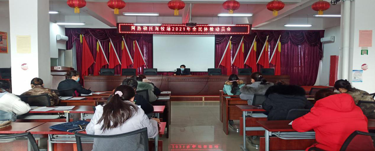 会上,场党委副书记赵娜同志宣读了《2021年阿热勒托海牧场全民健康体检工作实施方案》,并对下一阶段全民体检工作进行安排部署。