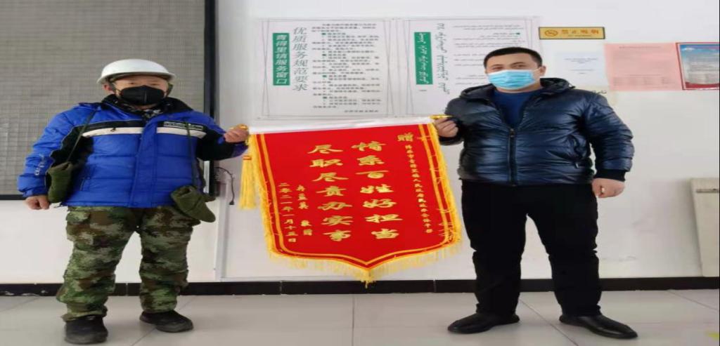 1月25日上午,青得里镇阿里翁白新村村民冉孟英怀着感恩的心,将一面印有“尽职尽责办实事,情系百姓好担当”的锦旗送到青得里镇民政办工作人员手中,代表全家对镇民政办的关心与帮助表示感谢。