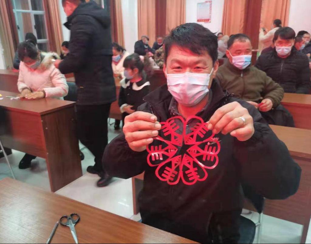 活动中,宣讲人员首先用通俗的话语讲述了窗花的来历、春节贴窗花的习俗以及一些窗花的种类,让群众对剪纸这项古老而纯朴的传统文化有了初步的认识。随后,宣讲人员介绍了剪纸的技巧,并亲自示范,带领群众一起参与剪窗花,大家纷纷拿起剪刀,认真地构思,裁剪出一幅幅窗花,一份份新年祝福,在剪窗花的过程中感受窗花将吉事祥物、美好愿望表现得淋漓尽致的文化氛围,将中华民族传统节日—春节的红火富丽、喜气洋洋的节日气氛在群众中烘托开。