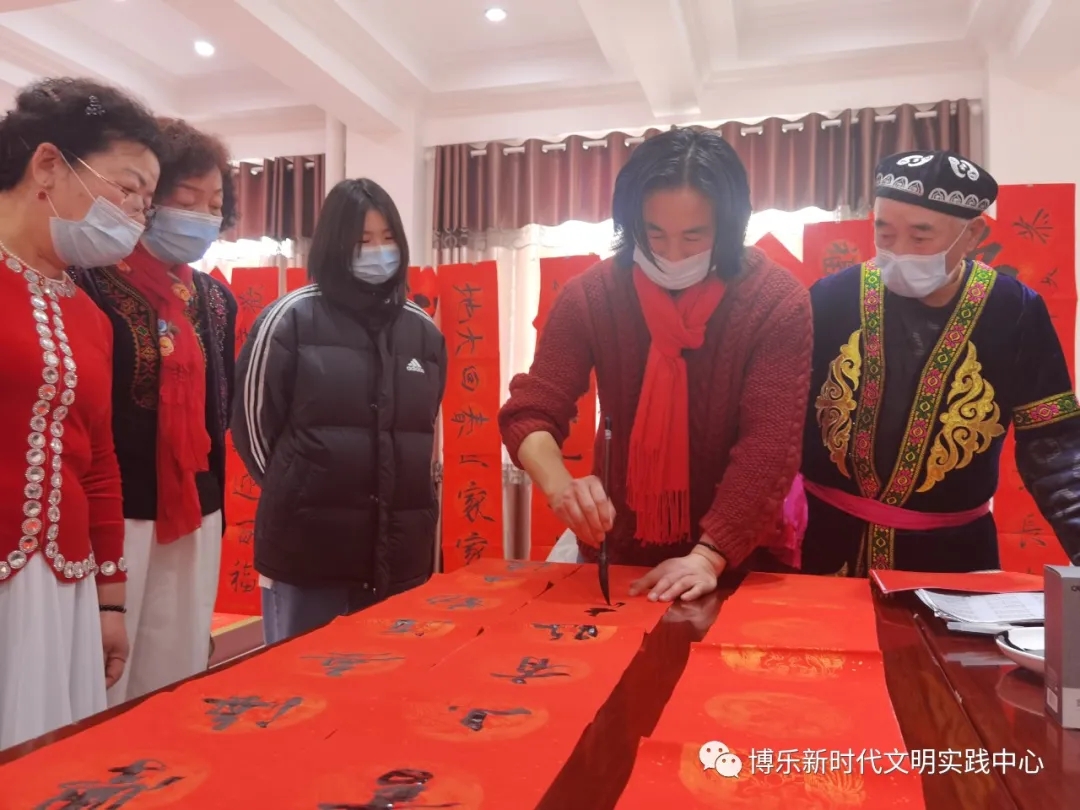 写春联、贴春联是迎接新年不可或缺的一道风景。2021年春节将至,为了传承中华优秀文化,丰富居民群众文化生活,营造健康祥和、积极向上的文化氛围和节日气氛。博乐市青得里街道新时代文明实践所组织州书画院(美术院)书画家与博州美术书法家协会会员,在2月8日,开展“挥毫泼墨迎新春 党群同心送祝福”志愿服务活动。