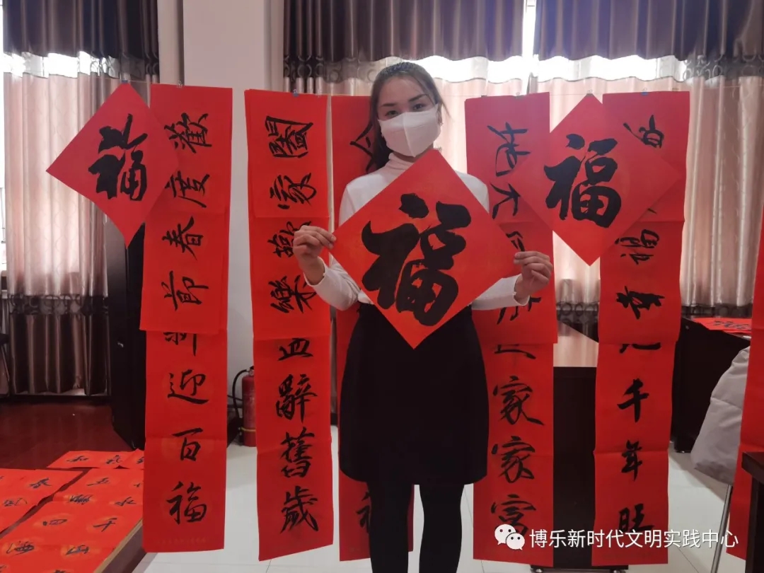 在近两个小时的时间里,共送出“福”字100余个,春联200余副。“以前家里贴的春联都是去市场买的,大同小异,今天拿到专门为我写的春联,我感到特别有意义,特别高兴。”活动不仅提前为广大群众送去新春祝福,同时也引导群众热爱和传播优秀传统文化,熏陶和培育文化自信力,把富有中国特色的民俗、年味在心底深深刻印,并大力弘扬和世代相传。