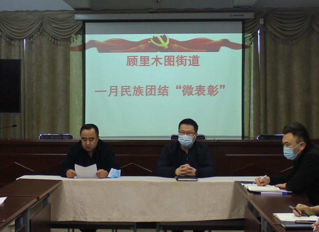 2月7日,博乐市顾里木图街道开展2021年1月民族团结“微行动”表彰活动,民族团结是我们各民族的生命线,民族团结“微表彰”是促进民族团结的有力载体。通过“微表彰”给荣誉、亮身份,表彰身边的优秀典型,凝聚人心。会上,宣读了《顾里木图街道民族团结“微行动”活动方案》。随后表彰了“最美抗疫卫士”、“最美抗疫先锋”、“最美党建小能手”共9名代表,为他们颁发了荣誉证书,鼓励他们在今后的工作生活中处处能起到模范带头作用。