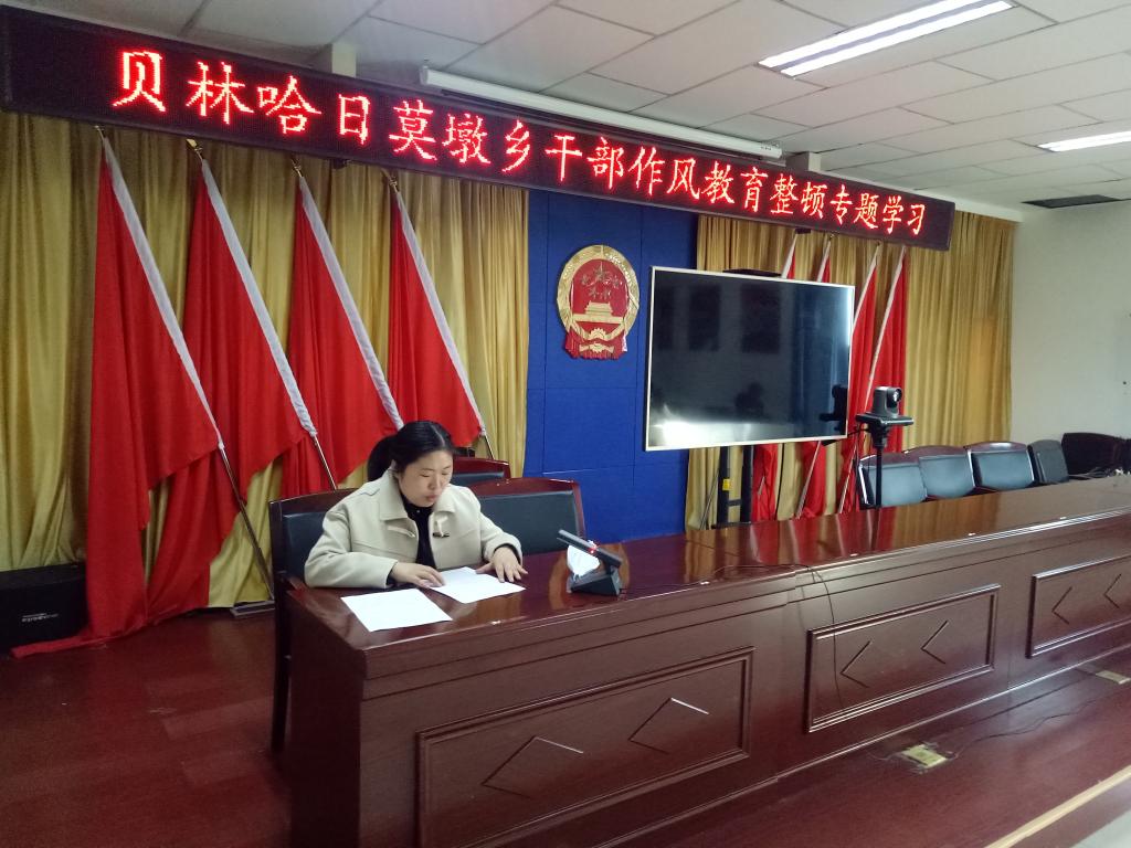 贝林哈日莫墩乡干部作风教育整顿工作领导小组办公室副主任魏晓阳:“抓作风建设要讲认真,目的是真正做到让党员、干部思想上受教育、作风上有转变,从而让广大群众感到变化、感到满意,确保上级决策部署和各项惠农政策落地生根、开花结果,以优异成绩向建党100周年献礼。”