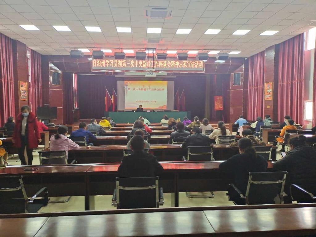 按照自治州党委的统一部署,3月28日,自治州宣讲团成员自治州实验中学党委书记、校长赵长城老师就学习贯彻第三次中央新疆工作座谈会精神,向乌图布拉格镇17个村队(社区)的30余名草根宣讲员进行了专题宣讲。