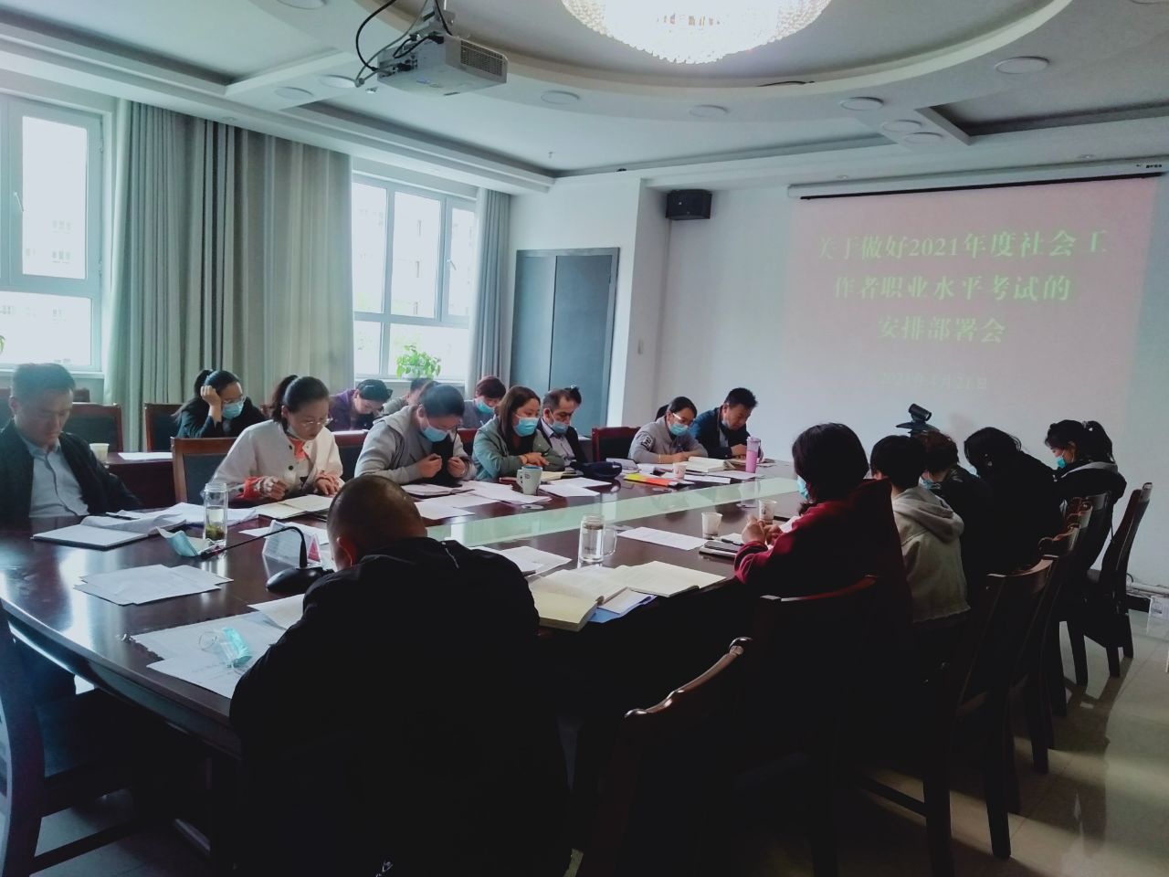 为持续做好社会工作者职业水平考试工作,提升持证社会工作专业人才总量,2021年4月27日下午,克尔根卓街道社会服务管理中心安排部署社会工作者职业水平考试工作,要求各社区加快摸底、宣传引导、动员报名、制定花名册等工作。