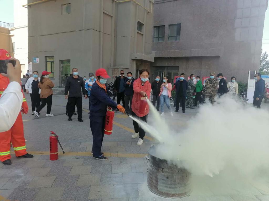 最后,继续安排辖区居民到小区空旷地带进行灭火实操,大家纷纷学习如何正确使用灭火器并体验了灭火过程。