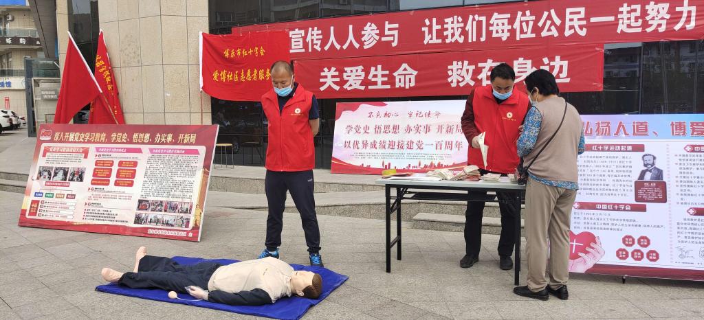 党史学习教育以来,北京南路社区积极开展为民服务活动,不断提高为民办事水平,2021年5月24日,北京南路社区联合博乐市红十字会在博乐市新友好开展救护知识“悟党史精神践行为民初心”宣传活动,为广大群众普及应急救护知识。