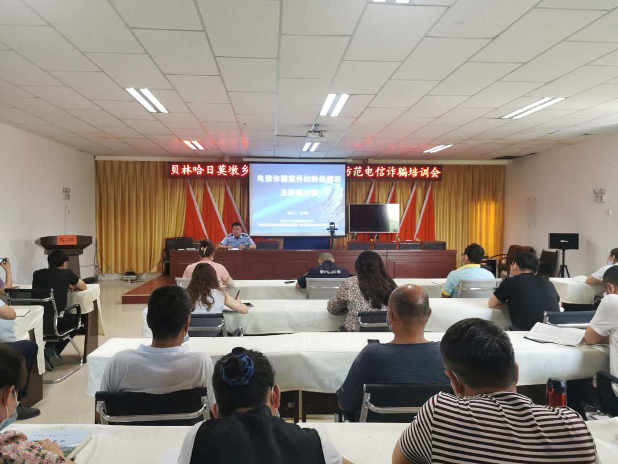 为切实做好人民群众安全防范教育,预防和减少电信诈骗案件的发生,6月4日下午,贝林哈日莫墩乡召开防范电信诈骗培训会,贝林哈日莫墩乡派出所所长刘炯亚为全体干部作培训,讲解防诈骗相关知识。