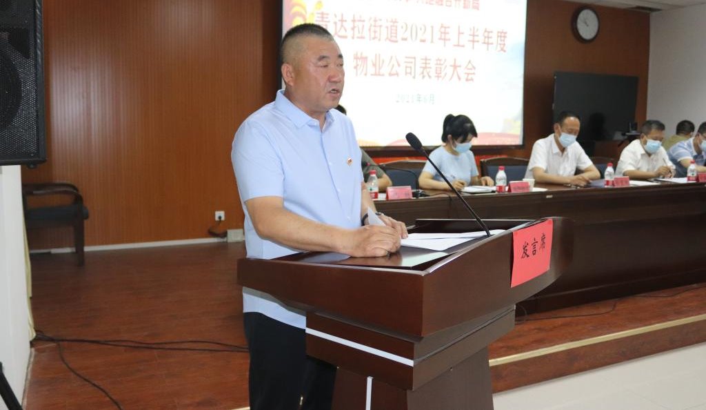 通过此次大会,青达拉街道党工委副书记、办事处主任陈琛同志指出要站在以人为本、构建和谐社会的高度,尽职尽责地开展工作,相信在全辖区的理解和支持下,通过大家锐意进取,同舟共济,创新发展,扎实工作,青达拉街道辖区内的物业管理工作一定会有新的起色,一定会创造出让政府放心、让社会满意的物业管理新局面!