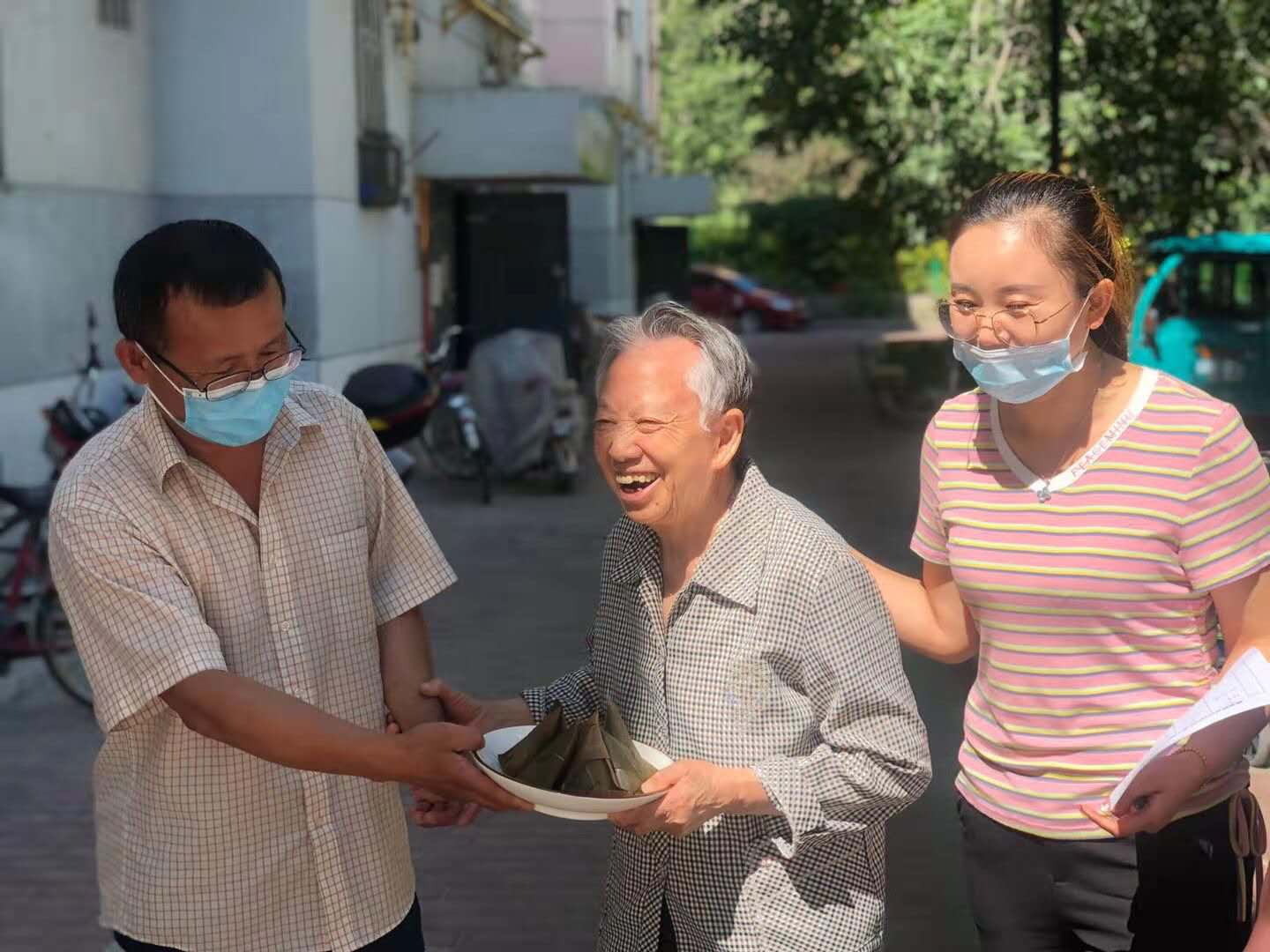 高龄老人苏桂花奶奶说:“感谢党和政府的关怀,感谢现在有这么好的政策,感谢社区能想到我们这些高龄老人,比我们自己的子女还关心我们,在端午节来临之际,还能亲手给我们送粽子,谢谢你们,你们辛苦了。”