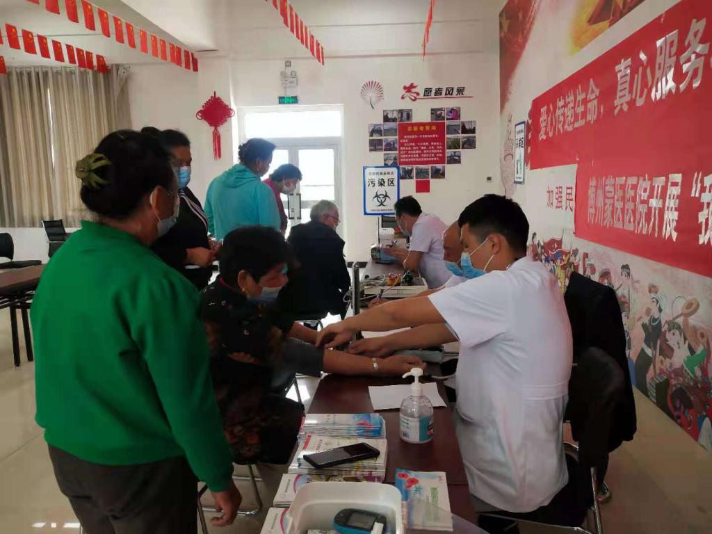 活动中,前来义诊的群众按照防疫要求有序排队。医务人员认真接待了每一位前来就诊的群众,在检查过程中,医生为老人量血压、测血糖,为他们检查病情并详细询问老人们的身体状况,耐心细致的分析病情,认真解答关于老人们常见病、多发病的预防诊治及愈后疑难问题,同时发放各种健康宣传册、卫生保健知识、注意事项、饮食安全、合理用药及预防艾滋病等卫生常识。对发现血压、血糖有偏高的村民都有详细登记,以便跟踪随访。此次共有60余名村民参加了义诊。