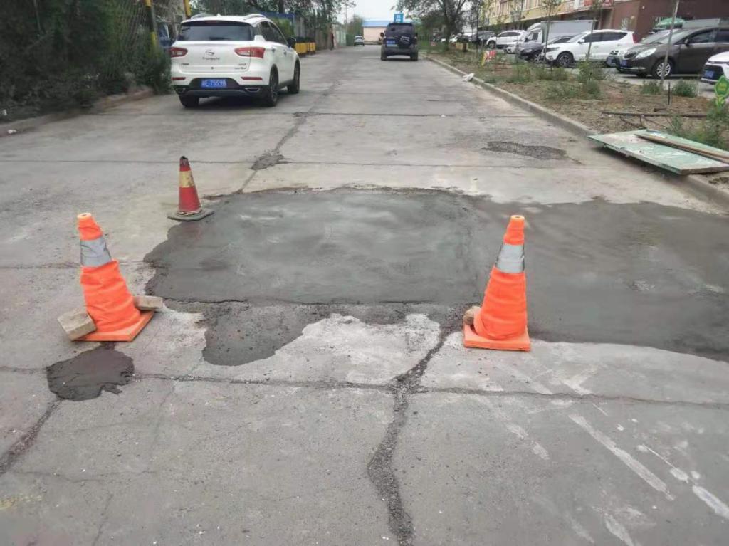 社区工作人员先用锥桶封闭道路路面,同时,工作人员向居民宣传注意安全,防止出现人员摔伤的情况。通过联系相关部门处理,最后由农五师城建安排施工进行修整。随后,组织专业施工人员对塌陷路面进行水泥灌浆填埋。经过施工人员的修复,路面已平整如初,消除了安全隐患。
