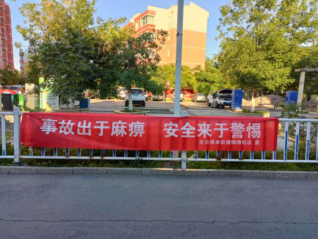 在辖区醒目的位置摆放安全生产月宣传展板、悬挂宣传横幅并在新友好宣传大屏上每天播放“生命重于泰山”宣传视频及其它安全生产宣传片、科普片等。