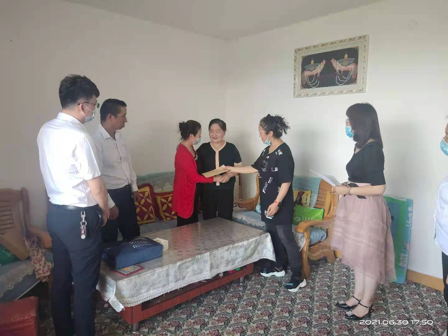 在中国共产党100周年华诞来临之际,为充分体现党组织对计划生育特殊家庭的关爱,6月30日博尔塔拉蒙古自治州卫健委党组成员副主任张枝花、顾里木图街道计划生育分管领导乌兰一同走访慰问了计划生育特殊家庭。此次共慰问特殊困难家庭4户,每户发放慰问金300元。每走访慰问一户都会同他们拉家常,详细了解他们的家庭收入来源,孩子学习情况,身体状况、医药费报销等情况。