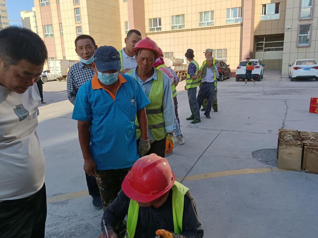 近日来,持续高温天气,为缓解高温天气对工地务工人员的影响,博尔塔拉蒙古自治州救助站组织开展“关爱农民工送清凉”慰问活动。2021年7月26日下午,博尔塔拉蒙古自治州救助站赴克尔根卓街道快乐家园B区C区,对老旧小区改造施工队进行慰问。
