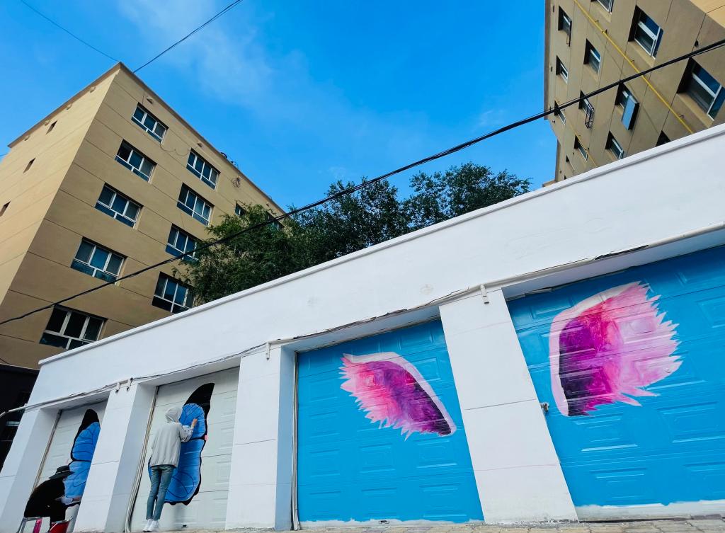 一花一世界,一墙一风景。顾里木图街道前进社区党总支联合辖区大学生志愿者开展“手绘文明 亮化老旧小区”墙绘志愿服务活动。