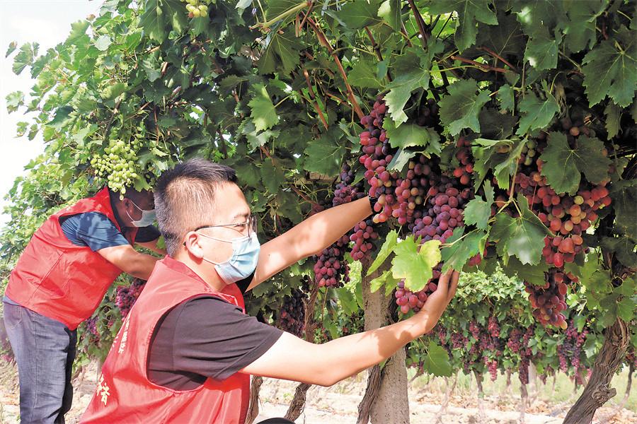 大家抓住好天气,赶紧采摘。”18日,博乐市贝林哈日莫墩乡博熬果业有限公司(合作社)400亩葡萄种植示范园里,博乐市发改委驻博乐市贝林哈日莫墩乡敖博恩塔拉村“访惠聚”工作队队员正帮种植户采摘葡萄。