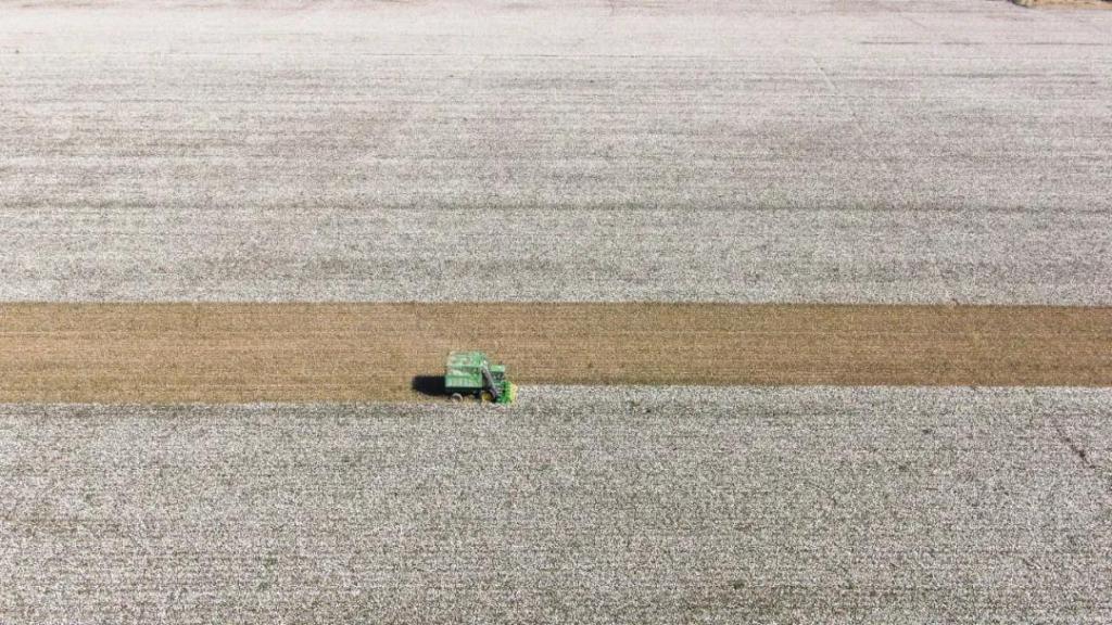 金秋10月,博乐市贝林哈日莫墩乡田间的棉花进入采收季,一台台大型采棉机穿梭在田间,农户的脸上洋溢着丰收的喜悦。
