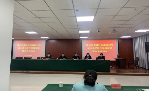 为进一步做好博乐市南城区街道办事处2022年度城乡居民基本医疗保险征缴工作,确保城乡居民基本医疗保险征缴工作有序推进。2021年10月24日,博乐市南城区街道办事处召开2022年度城乡居民基本医疗保险征缴工作部署暨业务培训会。博乐市医保局相关业务负责人、博乐市市税务局相关业务负责人、博乐市南城区街道办事处主要领导、分管领导、各社区书记和劳动保障专干参加了本次会议。
